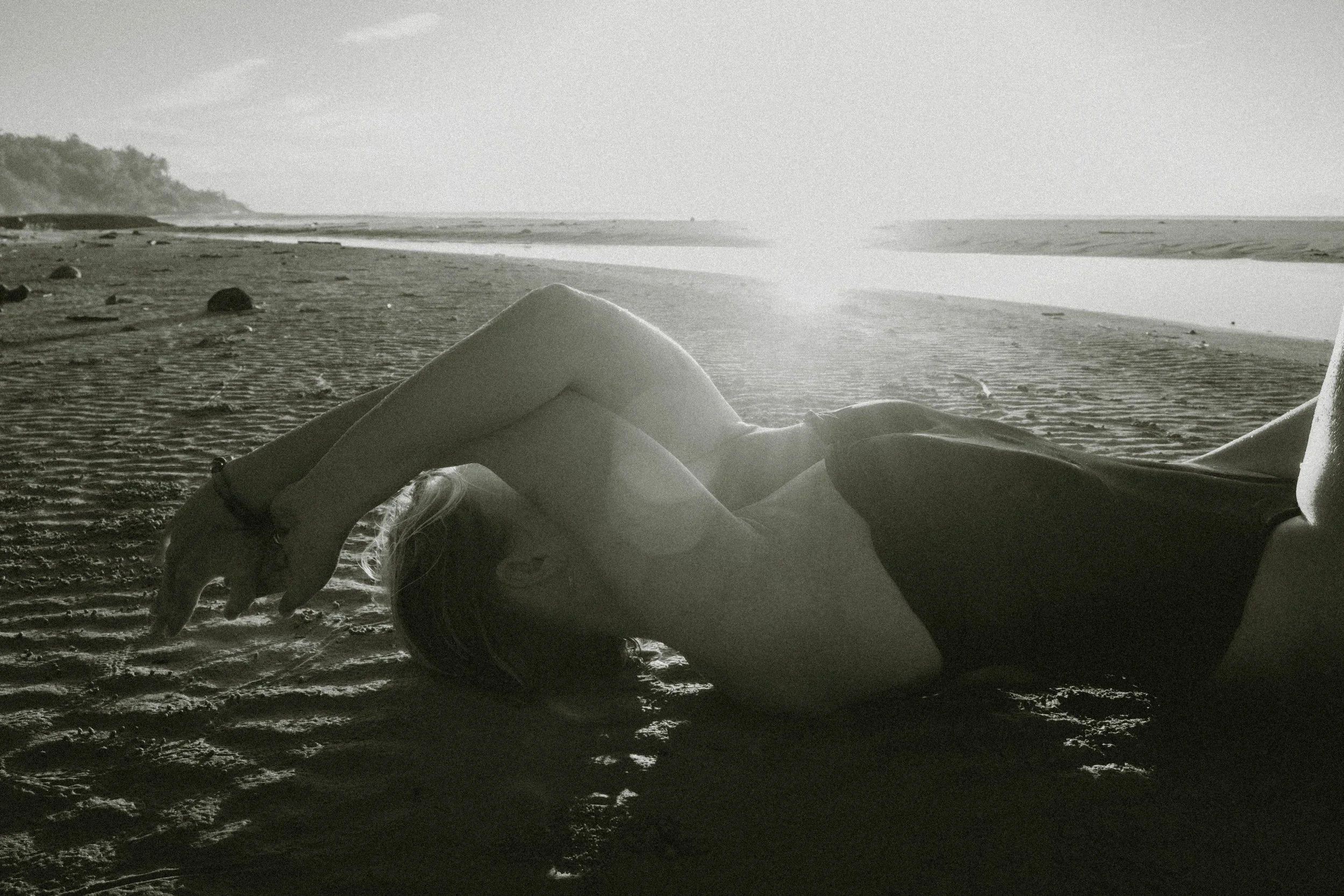 There’s a second body living inside the reflection, moving toward the sunlight. A new rhythm is breathing, stretching, creating space. We connect with the parallel of the soul, the body touching ground until dissolving into the last light of the day.
